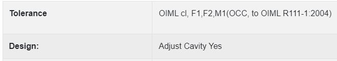 Knob type cylindrical type 1kg to 20g have an adjusting cavity. 10g to 1g are solid. |